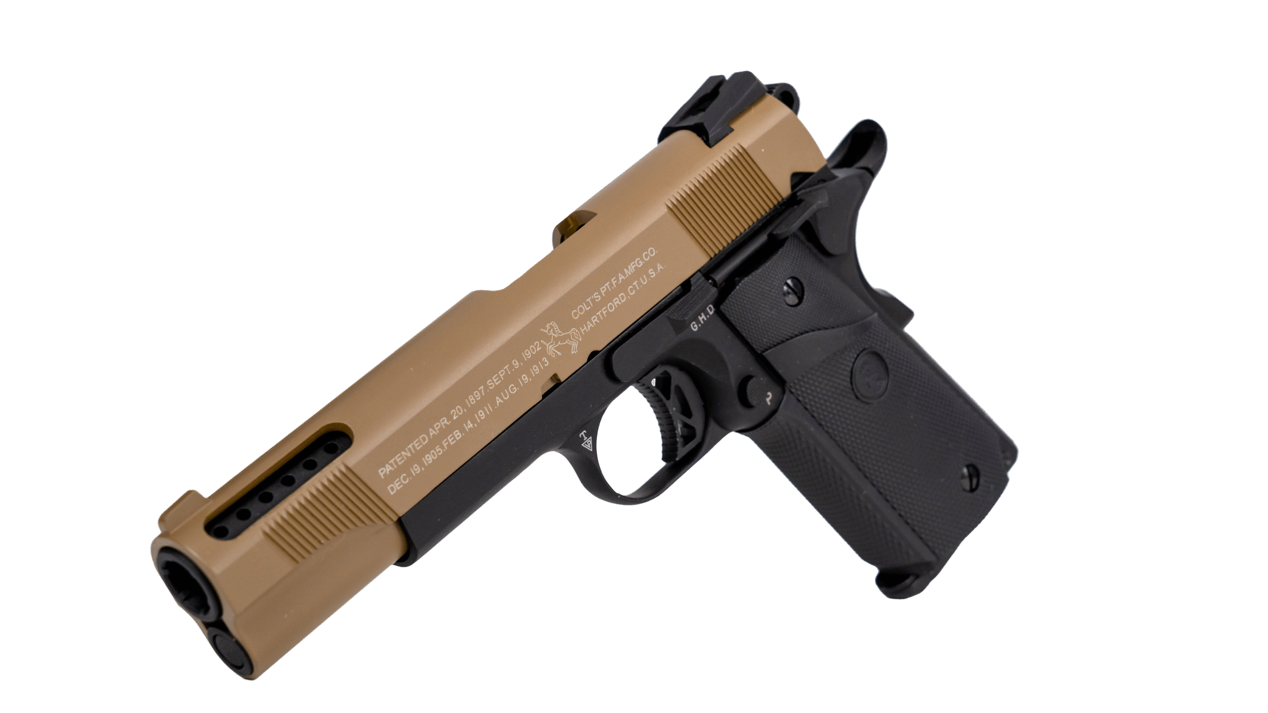 Airsoft pistoletas Colt 1911 Ported Tan Slide