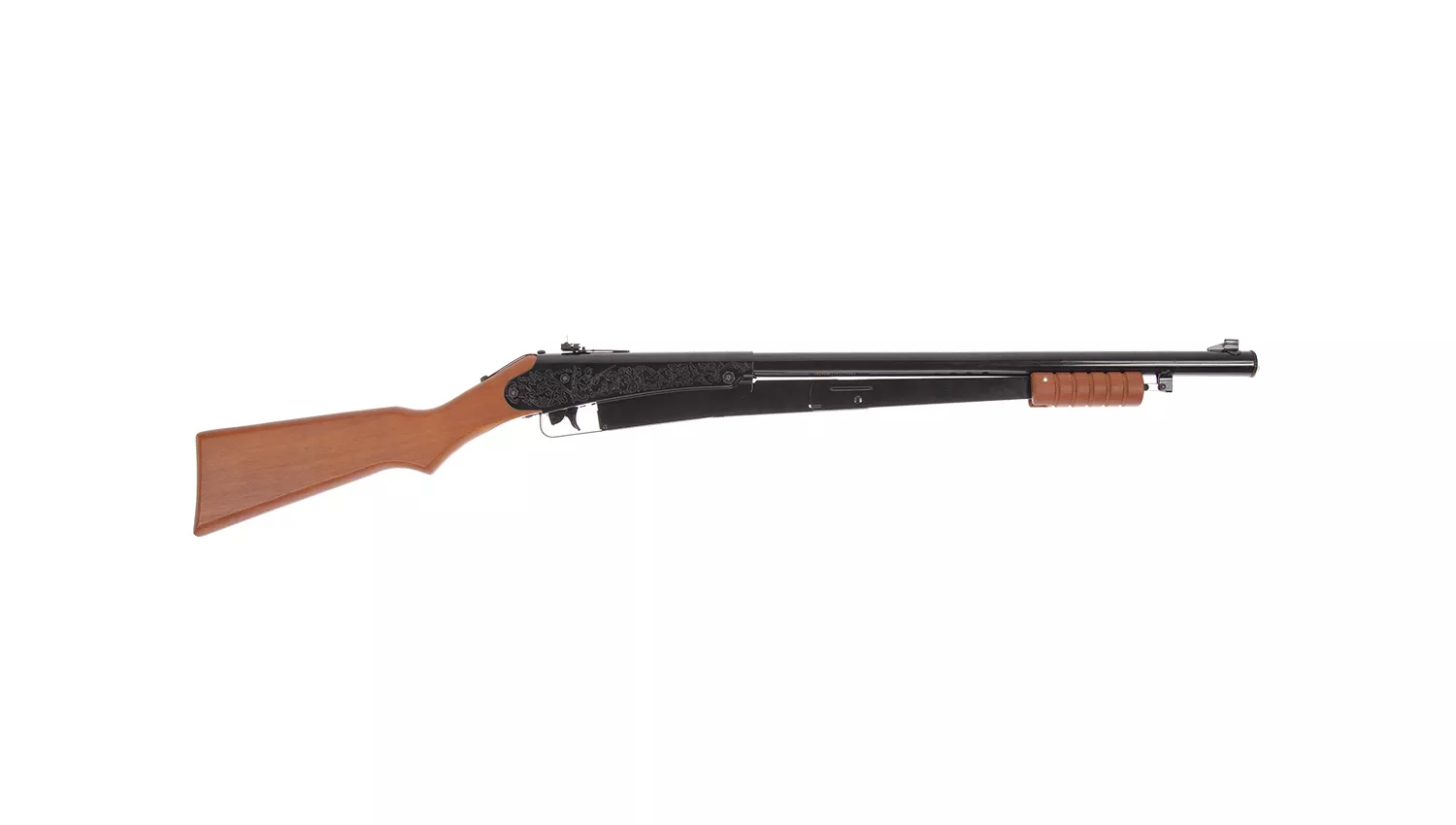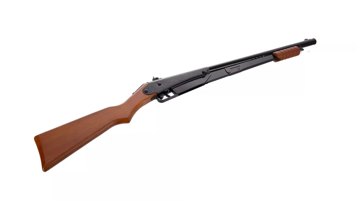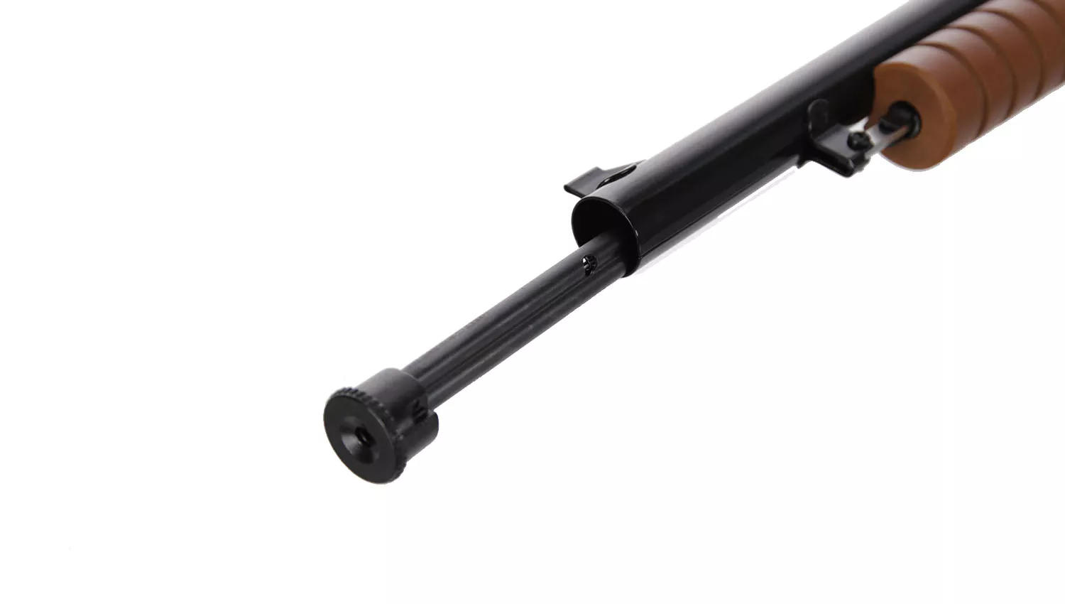 Modelis turi tvirtą metalinį mechanizmą, medinę buožę ir reguliuojamą galinį taikiklį. Rankinis pompos veikimas suteikia tikslų ir stabilų šūvį bei išskirtinį naudojimo pojūtį. Patikimas, paprastas ir ilgaamžis pasirinkimas kasdieniam naudojimui.
